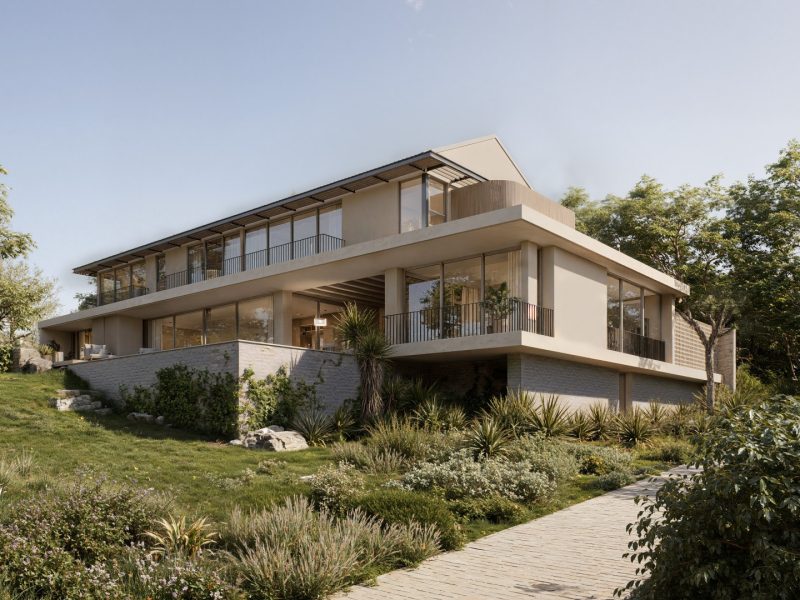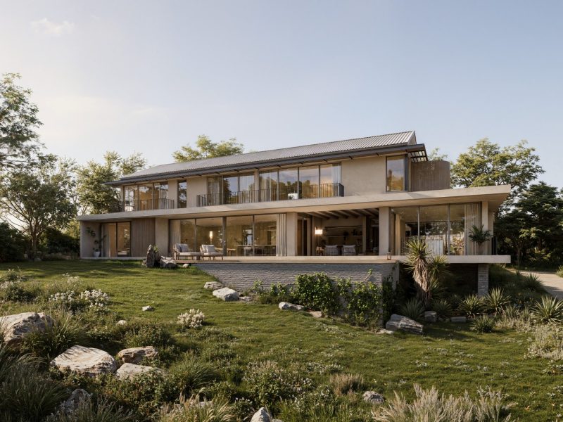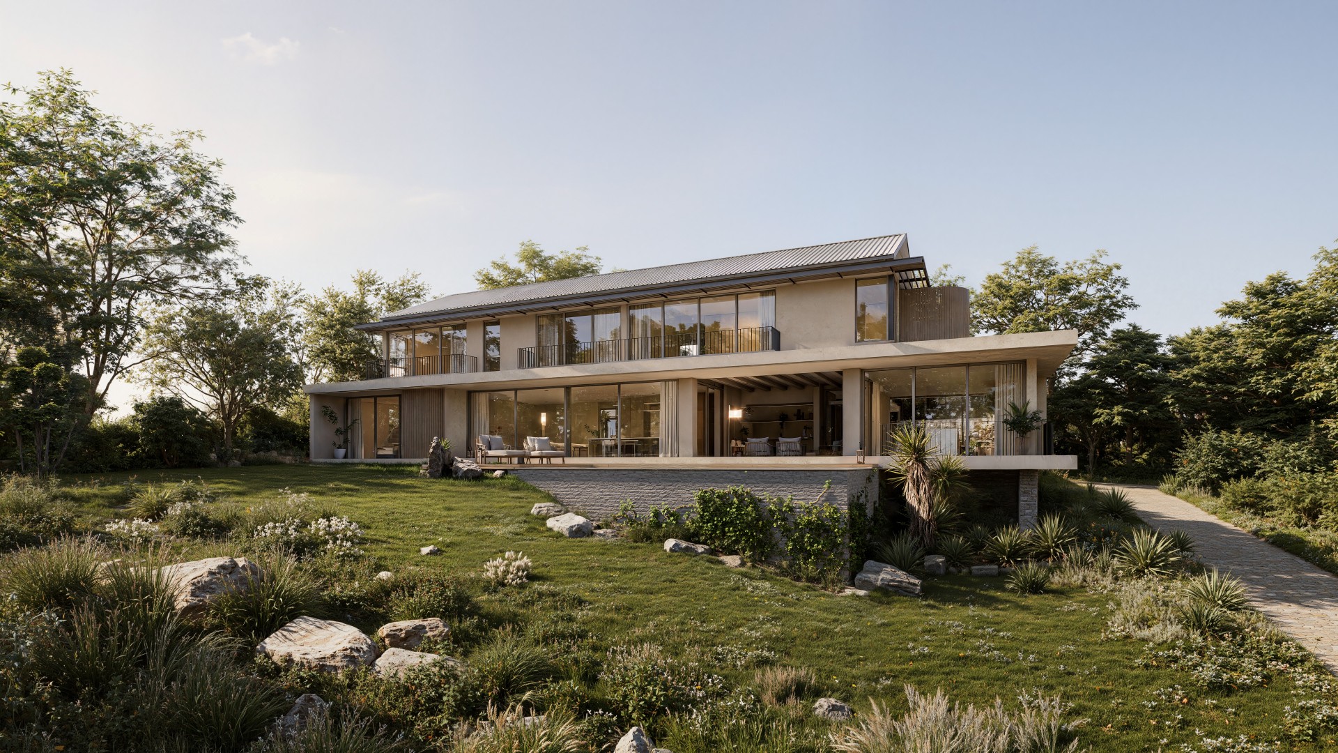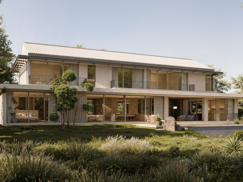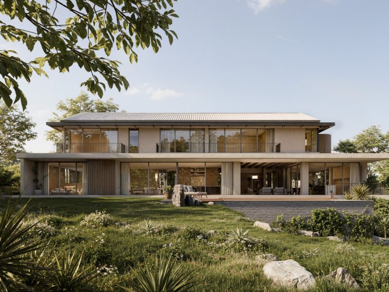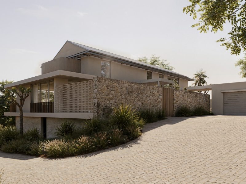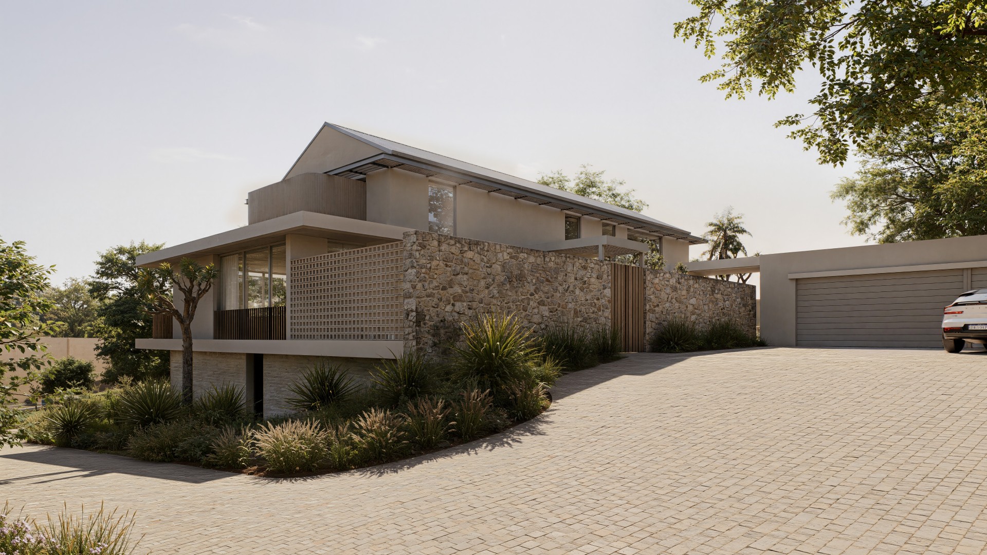 This contemporary residence in Seaton Estate, Salt Rock, is carefully composed to sit within its natural setting, balancing clean architectural lines with warm, tactile materials. The home is arranged around sheltered outdoor spaces, creating a seamless flow between interior living areas, landscaped courtyards, and garden terraces. Generous glazing, deep overhangs, and layered screens enhance light, privacy, and passive comfort throughout the house. The result is a refined yet relaxed family home that responds to the coastal estate lifestyle and its surrounding landscape.